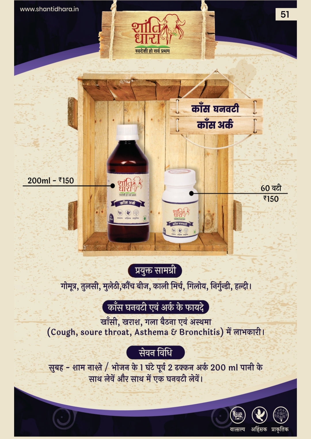 Main components - Cow urine, Tulsi, Mulethi, Kaunch Beej, Black Pepper, Giloy, Nirgundi, Turmeric.