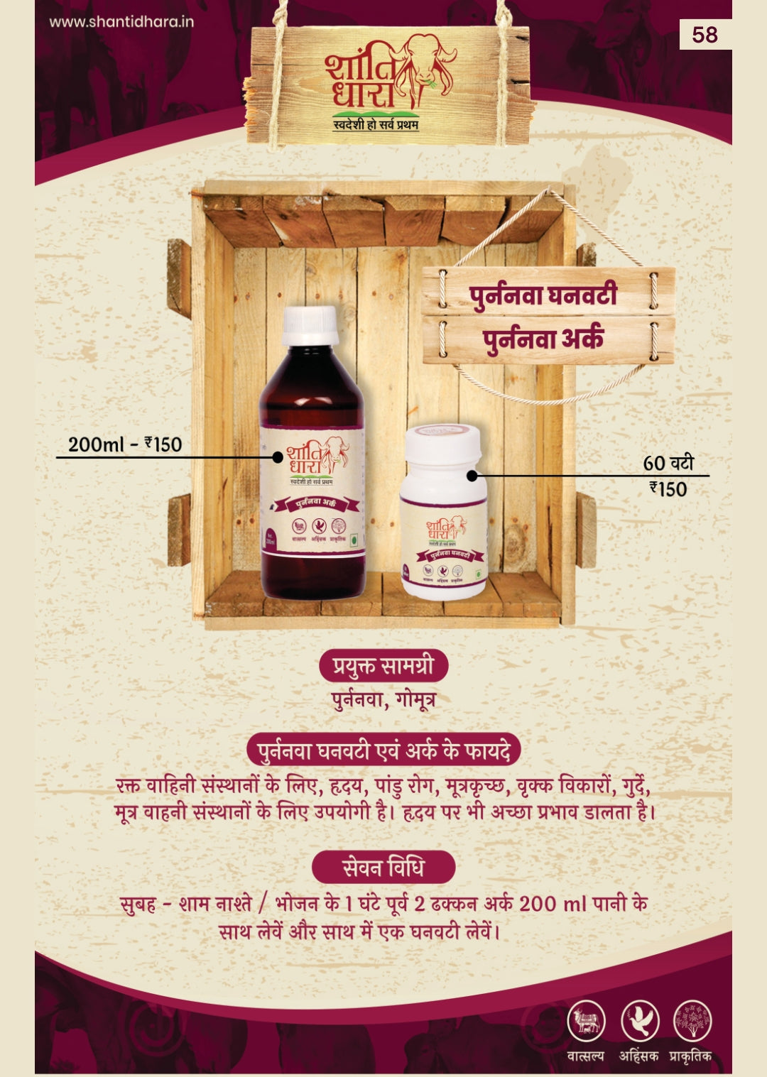 मुख्य घटक : गौमूत्र अर्क, पुनर्नवा